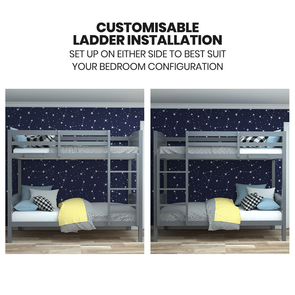 You can also take advantage of customisable ladder configuration, which allows you to install it on either the left or right side to best suit the room layout. Straightforward instructions are provided, along with quality fasteners and pre-drilled holes.The Kingston Slumber Modular Bunk bed is a practical and stylish addition to any room.